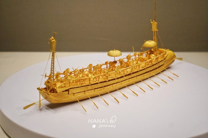 航海博物馆还有一个非常贵重的宝物,便是春秋大翼战船。这艘战船是黄金制作,完美的诠释了春秋战国时期的战船。 从船的细节和规模来推测,当年吴国经济力量和生产技术水平都相当不错。