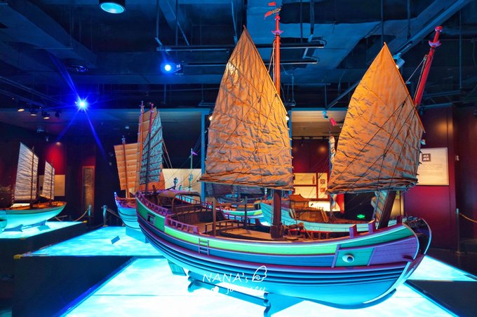 不得不说,足足有四层之高的明代福船,真的是最震撼,坐镇在最中心的场馆位置,这艘一比一还原古代福船的模型,也让大家见证了中国古代海船和历史悠久的航海史!