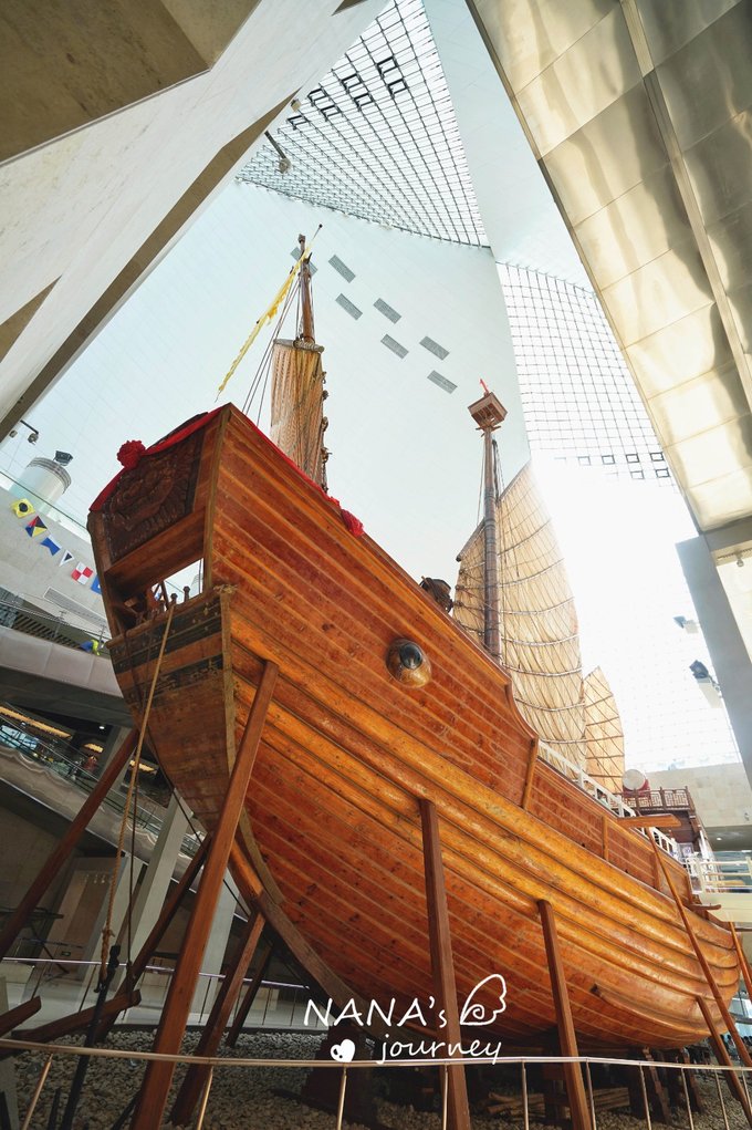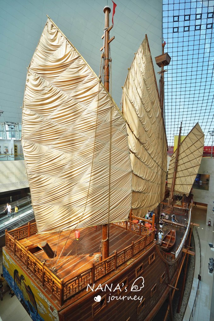 博物馆的另外一宝,便是在我们随着人流进入场馆后的第二次震撼了。场馆的设计是先上二楼,从最中心最佳的位置看镇馆之宝——明代福船。然后再下到一楼按顺序参观场馆。