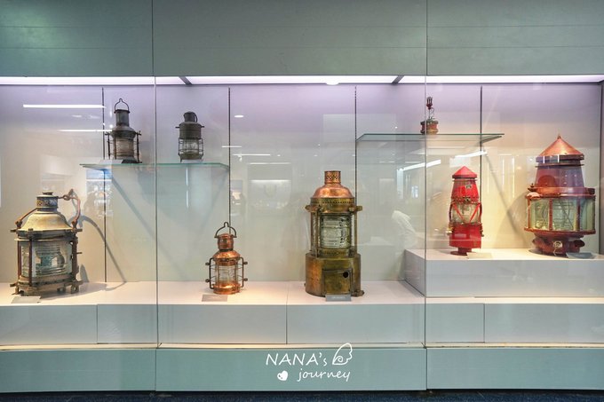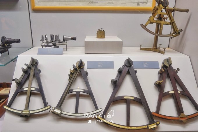 老物件很多,都整齐摆放在橱窗中,这些,都是历史长河中对航行进行安全保障的仪器,虽然仪器在革新,但功能和需求一致,天文钟、六分仪、八分仪,让我们见识增长。