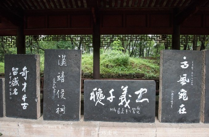 这些石碑的笔法各异,内容有“浩气长存”、“奇才千古留盛名”、“龙凤”、“白马雄关”、“名垂青史”等,这些文字落笔形象,令人赞叹。