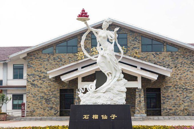这里最标志性的建筑物便是游客中心的广场的石榴仙子的雕塑,洁白的身姿,手上端着红色的石榴,特别的有象征的意义。