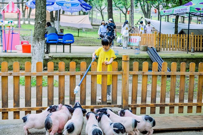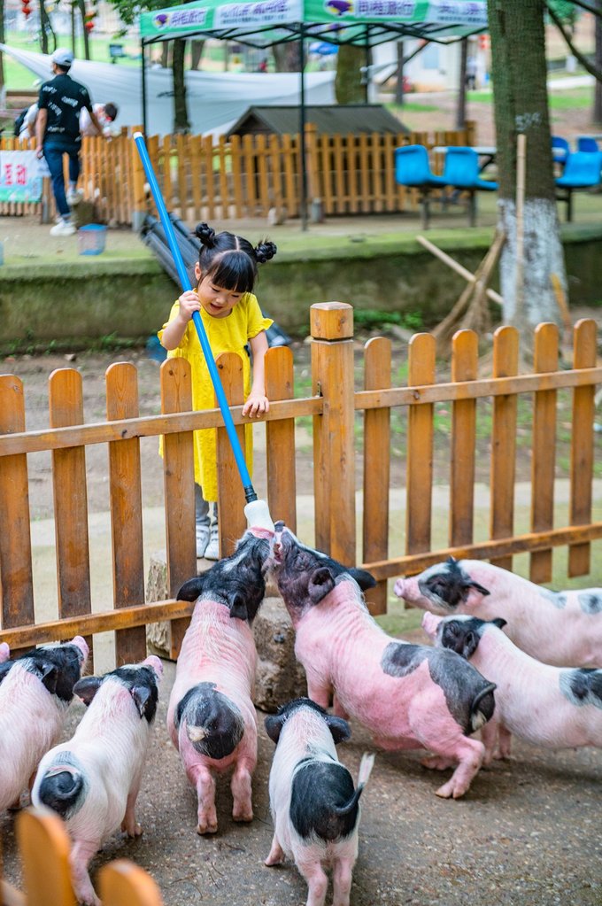 营地和烧烤区中间还有一些诸如小兔子,小香猪,狐獴之类的小动物,竟然可以给小香猪喂奶瓶,可爱度直线上升。