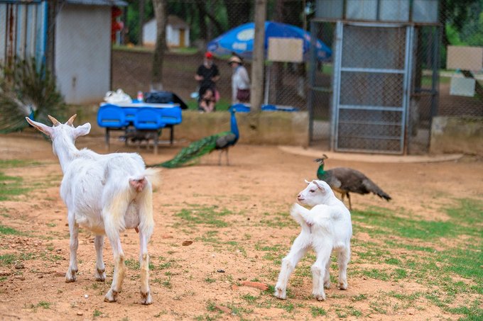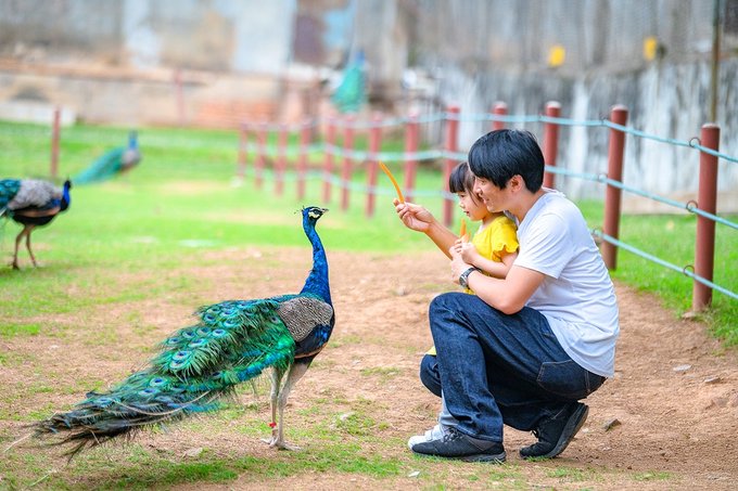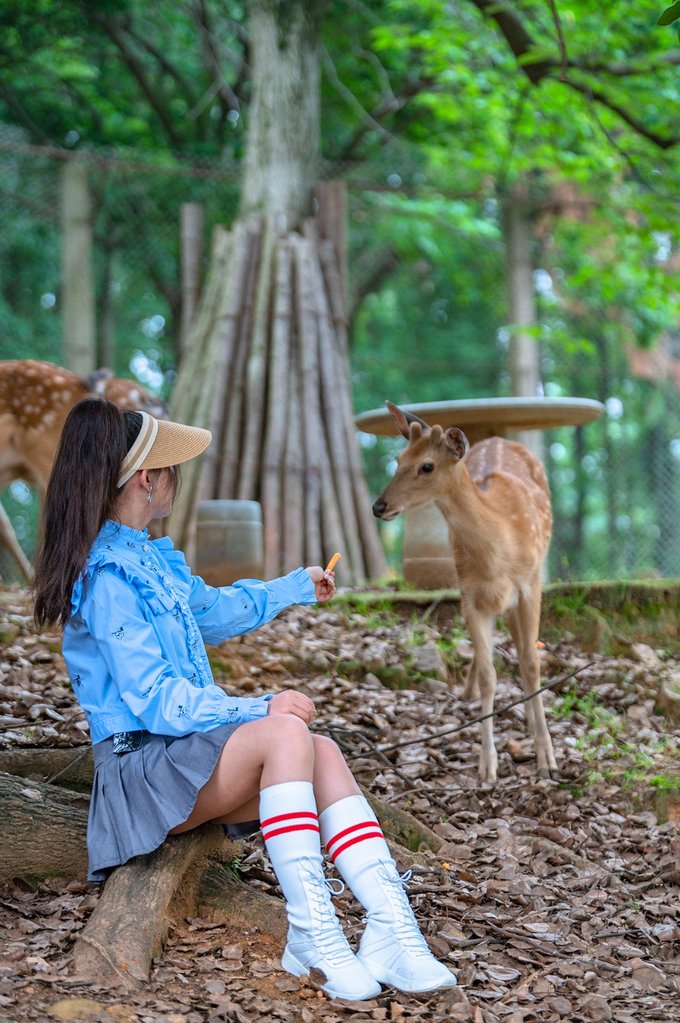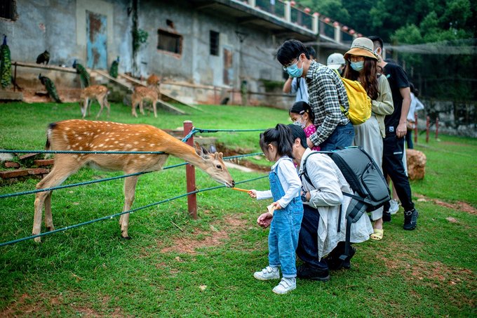 除了这些,园区还有孔雀园,鹿苑、飞禽苑,都是可以进到园区里近距离互动的。