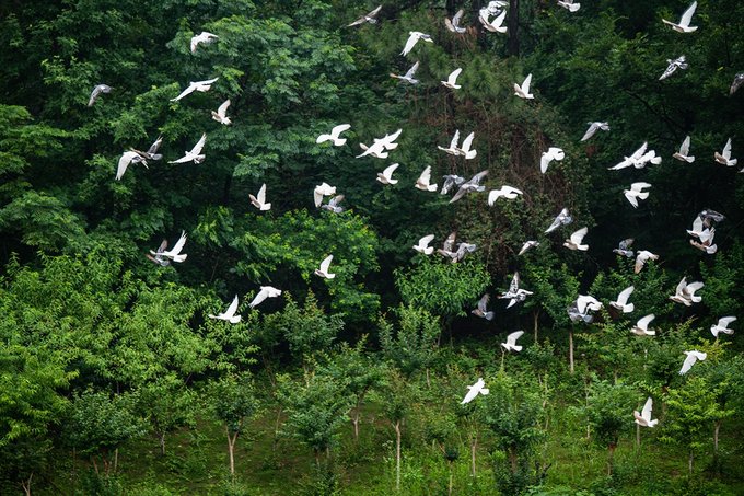入园首先映入眼帘的就是鸽子广场,远处几层的鸽舍,近处广场上随处可见悠闲的白鸽。