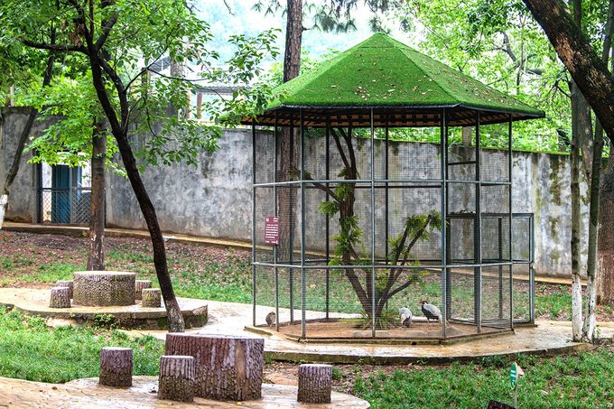 一个个小亭子里住着不同的鸟类,有大秃鹫,亦有其它种类的雕,每一个类别都独拥一方天地。