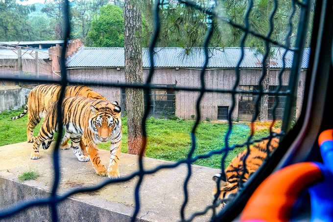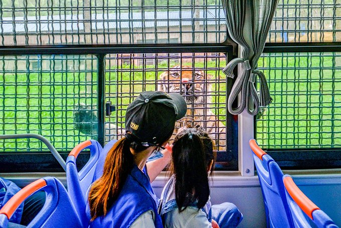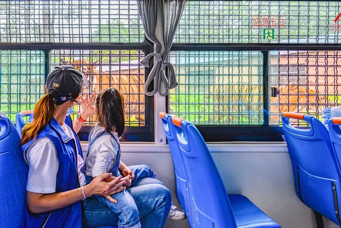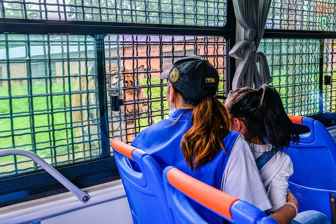 乘着观光巴士穿行在猛兽体验区,近距离欣赏狮子、狼,以及数量不少的老虎,这个项目也是武汉九峰森林动物园的招牌之一,不过,之前因为一些原因有停一段时间,我们去的那天是观光车升级改造后的第一次试运行,近期应该会正式对外开放,喜欢的小伙伴可以期待一下。