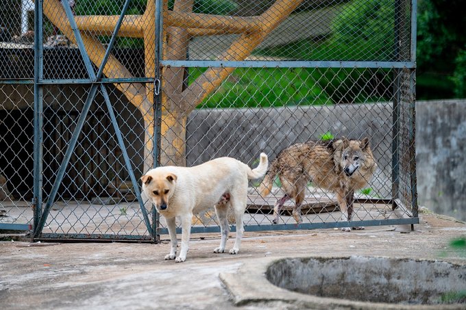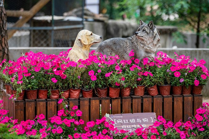还有曾经的著名网红【狼与狗】,围观见证了它们的友谊。这俩小伙伴虽说长相接近,但有对比小姑娘一次就记住了,尾巴下垂的是狼,尾巴上翘的是狗。