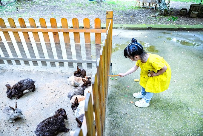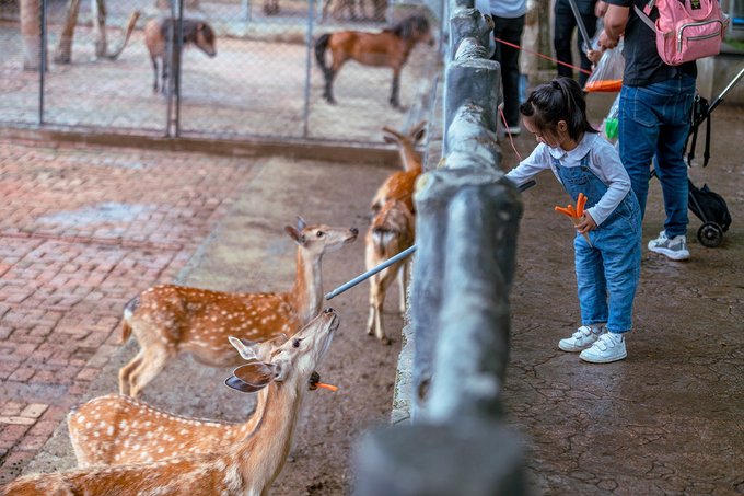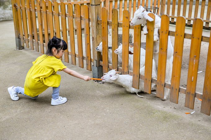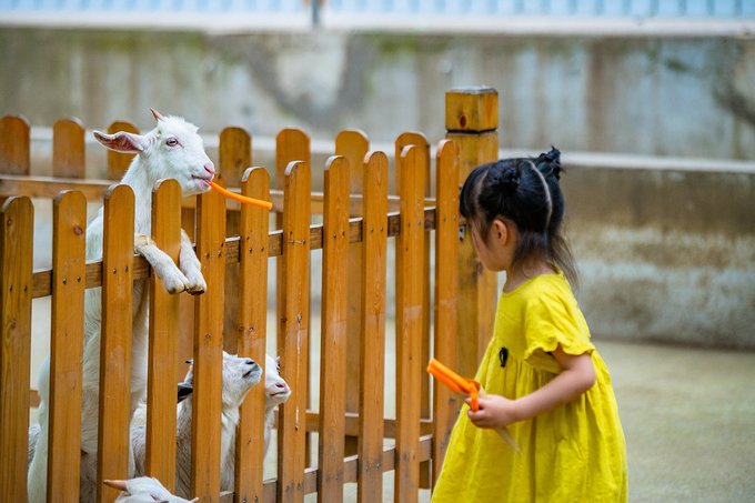 这里基本上所有的动物都可以喂食,小姑娘玩得都拉不走。