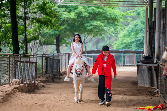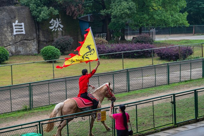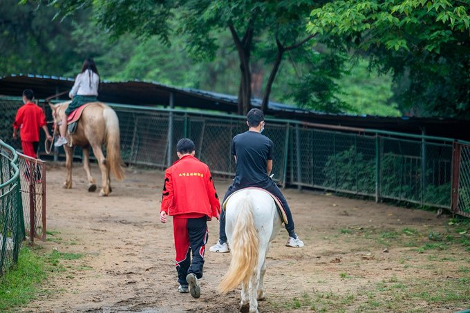 动物大巡游观众席后面是马场,养了各种规格的骏马,这里有单独收费的骑马项目,小姑娘和爸爸一起骑了红色骏马,转圈的路上还遇到了骑白马的小仙女,都很威风又好看。