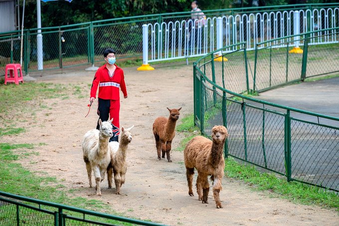 紧挨着猛兽观赏区的步行游览道上,黑熊憨厚、骆驼巨大、小浣熊顽皮、小熊猫萌趣、还有羊驼、绵羊、斑马等等依次排开。