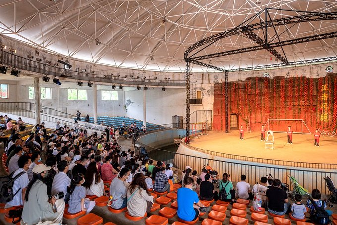 森林剧场旁边紧挨着的大表演场是动物大巡游的场地,各式各样的动物明星们成群接队来此展示炫技,这个场地面积很大,可同时容纳上千人共同观看。