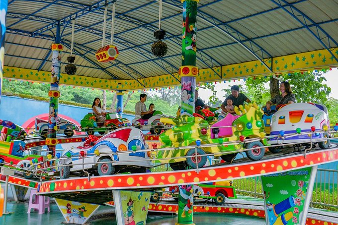 挖机、碰碰车、旋转木马、漂流船、摩天轮等等各式各样的游乐设施,这个区域游玩项目是单项收费的,价格从10元-30元不等,然后园区有充多少送多少的活动,喜欢玩的话,充卡更划算。