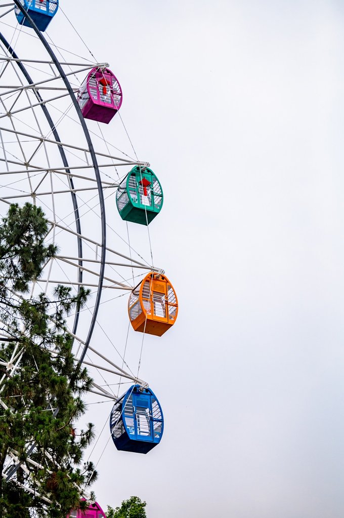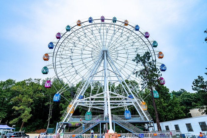 摩天轮是最近新增加的项目,全新的,没事上去转一圈,升到顶端时可以看尽大半个九峰山和光谷景色。
