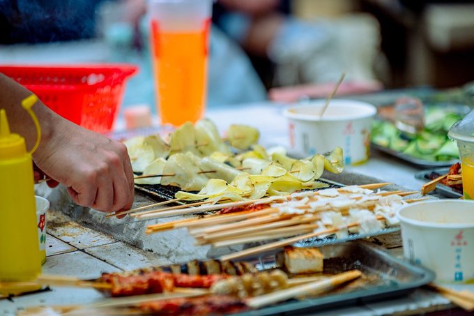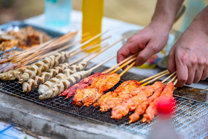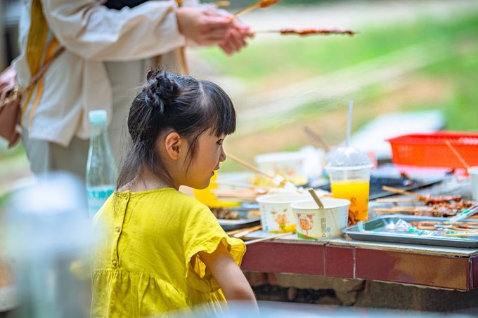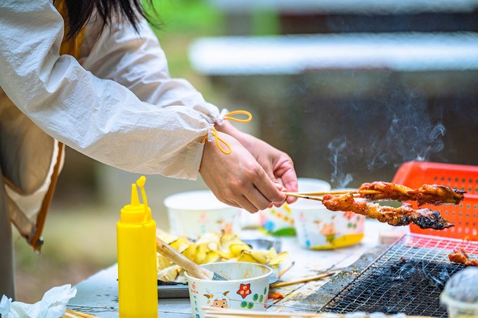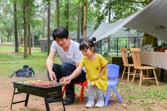 营地对面还有一片烧烤区,烧烤灶是园区做好的,可以自带食物,也可以在旁边的食肆里买半成品,三五好友,几个亲人,围在一起,一边烤一边吃,一边欢笑一边放松。