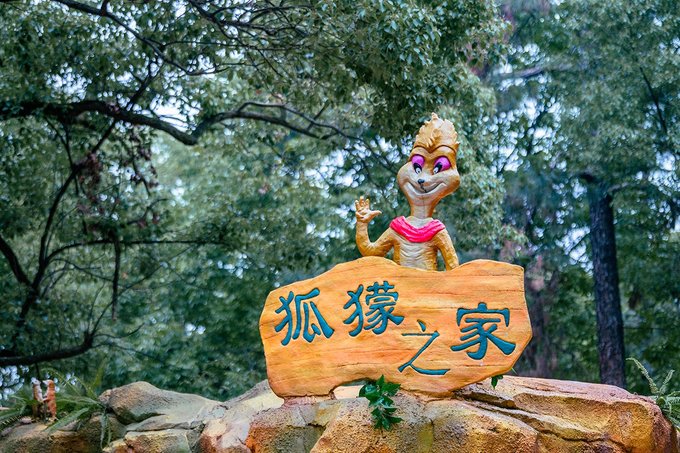 从梦幻剧场出来就可以看到九峰森林动物园游乐场的大招牌,走进这扇门廊,里面是另一番天地。