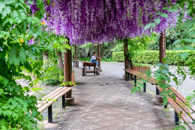 园区还有几处好看的打卡地。像紫藤架、像森林、像那座不知名的桥、还有那片藏在绿野仙踪里的白雪公主,没有女生会不喜欢。