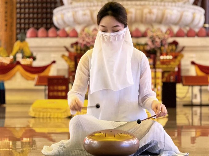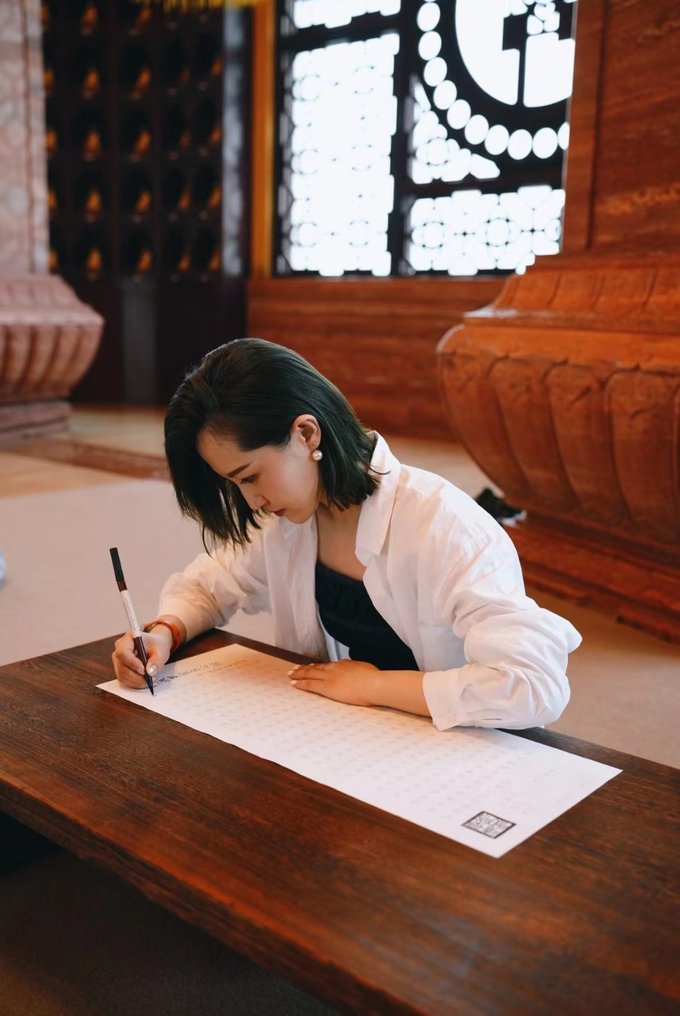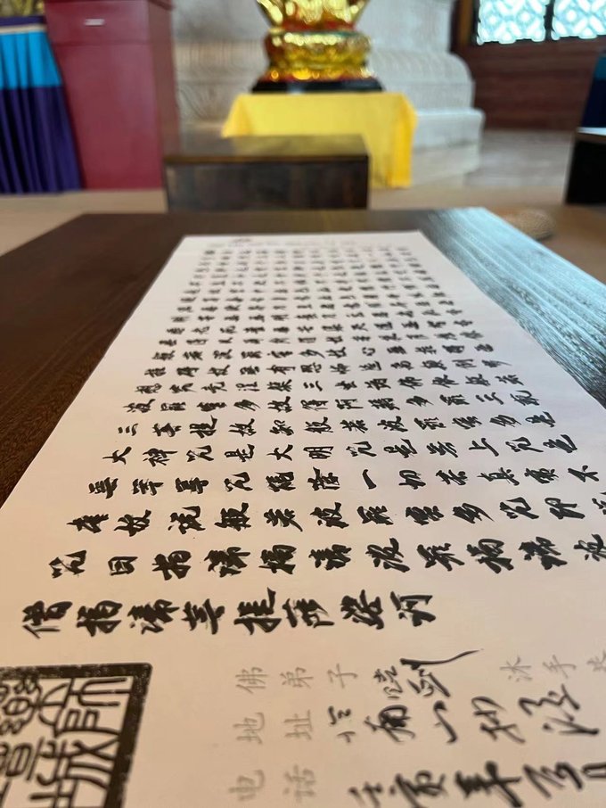 在五方五佛殿内禅坐、抄经,一笔一画专注中,恭敬、虔诚抄写,开启内心智慧之门,潜心研读佛法禅意。