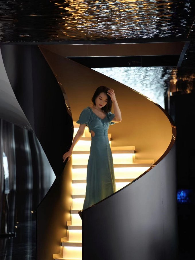 科技感十足 ,从入门地面的水磨瓷砖,搭配水波纹墙体,见光不见灯的线条灯,整体冷光系搭配金属材质,饱含科技感且视觉层次感让人很惊艳。