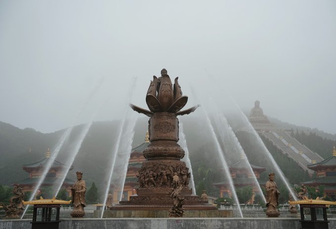 华严世界药师玉佛也是景区一大亮点,观赏庄严震撼的药师颂 聆听音乐喷泉 在转经回廊抚转经筒一周,似阅经108遍,功德无量为南山旅游景区再添宗教文化胜景。