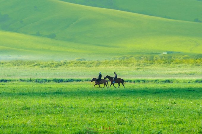 草原的灵动唯美,在这里被淋漓的体现着。阳光灿烂,绿意耀眼,面前的景致似乎美到不真实,似到了北欧田园,似走入了诗画轴卷。