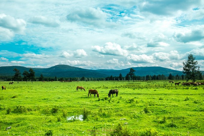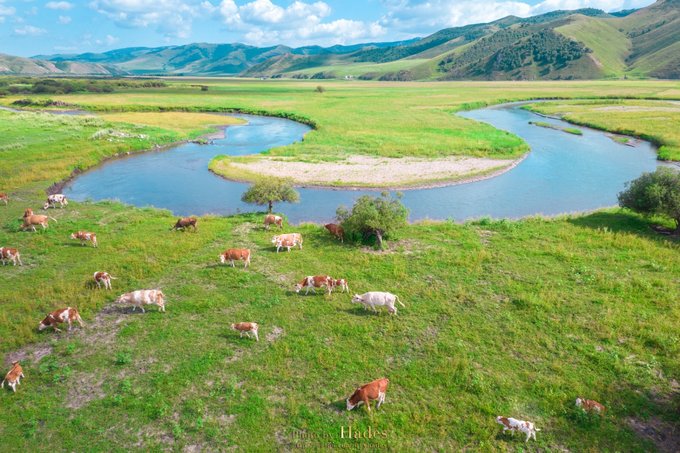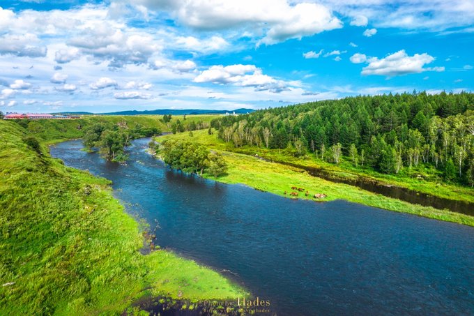 大雨之后的阿尔山国家森林公园,天晴云开,瞬间入了油画的世界! 不冻河蜿蜒回转;沙洲浅滩草嫩树茂,牛羊马匹悠然自在……不需要思考,不需要构图,只要站在河畔,便能融入这画境之中! 此时此景,便值得奔赴千里栉风沐雨!