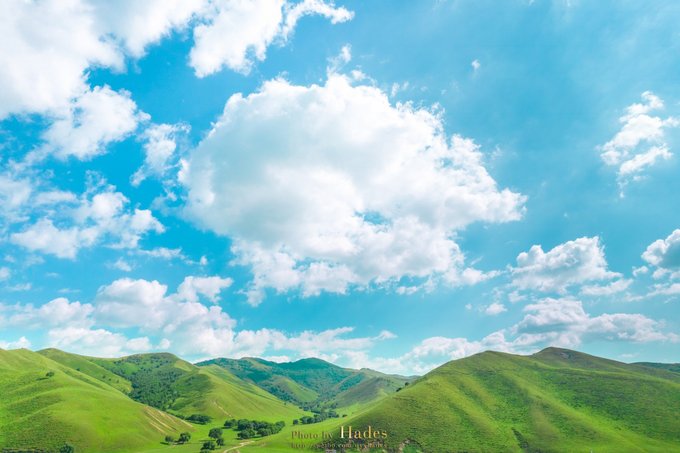没好的时光总是那么的短暂,嬉水拍照,不觉又到了黄昏归巢的时候了。草间的小河,远山的云朵,即使行走在路上,也有一途的美景等着你观赏检阅。如果遇到黄昏夕阳,那便又是一幅浓墨重彩的画卷了!