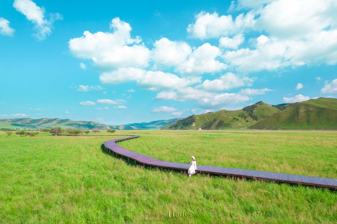 这里有多美?这么说,就是草地上的一条栈道,你都可以从午后拍到日落。如此草原,站立坐卧,皆是童话般的风景。