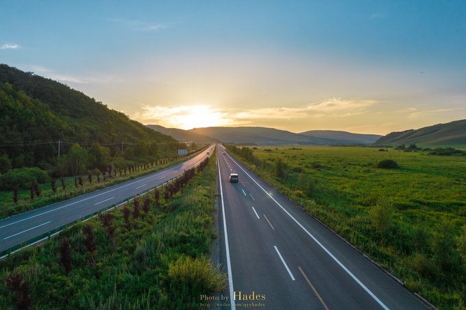 美景醉人!在夕阳的催促中,我们才恋恋不舍的离开乌兰毛都草原,继续向着阿尔山市区的方向继续进发。