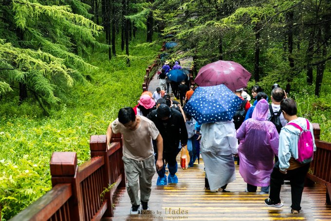 阿尔山这捉摸不定的天气,让所有风景都如盲盒彩蛋。 即使这般,也没有阻挡人们一睹天池风采的步伐,顶风冒雨而来,只为这一眼!不自来,不亲往,都难想阿尔山的多姿多彩!