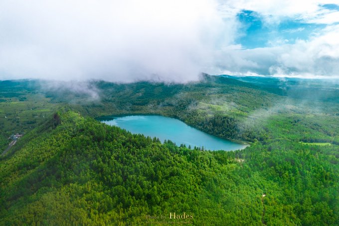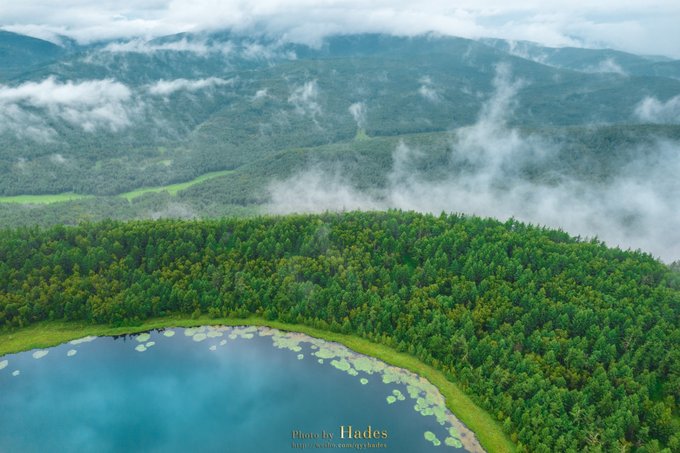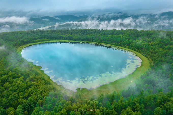 阿尔山国家森林公园内,另一座驼峰岭天池,也是每位游客必到的打卡点。驼峰岭天池的湖面形状像一只巨大的脚印,深深的印在这大兴安岭的青山之间。
