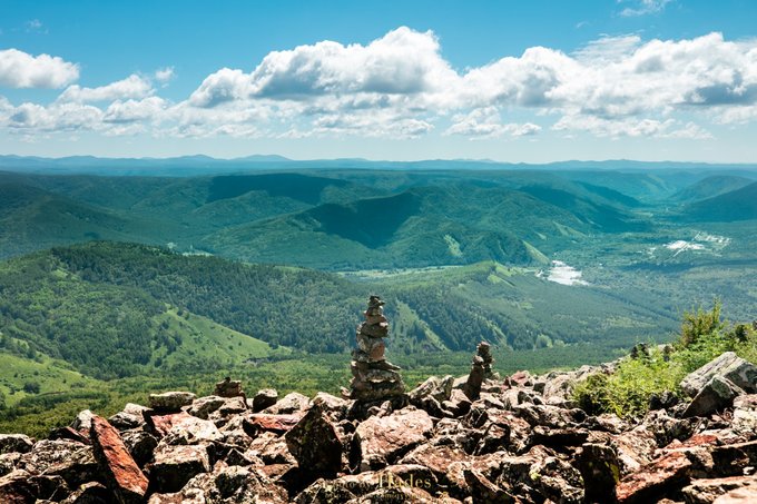 阿尔山不仅有柔美娟秀的时候,也有狂野奔放的一面。白狼峰因冬季的雾凇享誉,虽是夏季,站在白狼之巅,远眺大兴安岭的碧波万顷也会不虚此行。 乘上景区的越野车,从山脚一路穿林而上,绿树掠过脸庞,云朵映在车窗,穿山越林的感觉刺激非常。