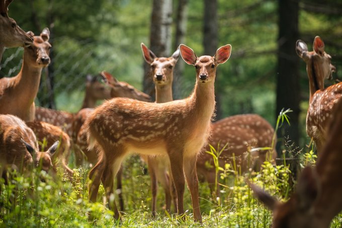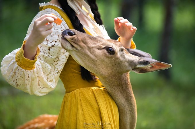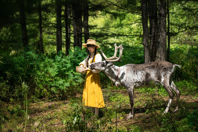 而同在一片森林中生活的驯鹿们,就与梅花鹿截然相反。它们更热情更主动,天生的自来熟,只要你进入它们的视野,不管有没有吃的,都会过来跟你亲密接触下。 如果你是女生,又喜欢拍照,那一定要准备一身森系的服装,拍上几张童话色调的美照!