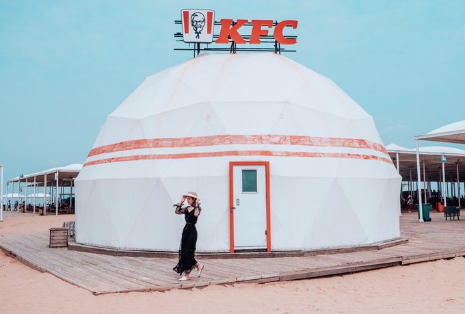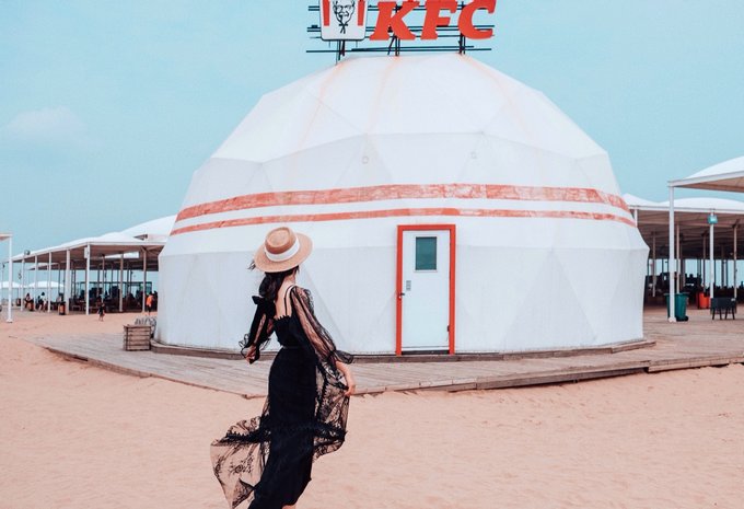 仙沙岛还有一座蒙古包外形的KFC,小妖除了在这此解决午餐,还在这凹造型拍了人像,超级出片!