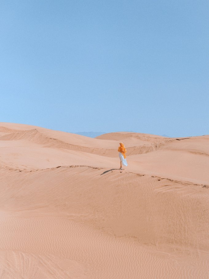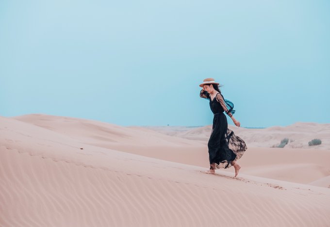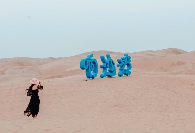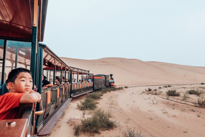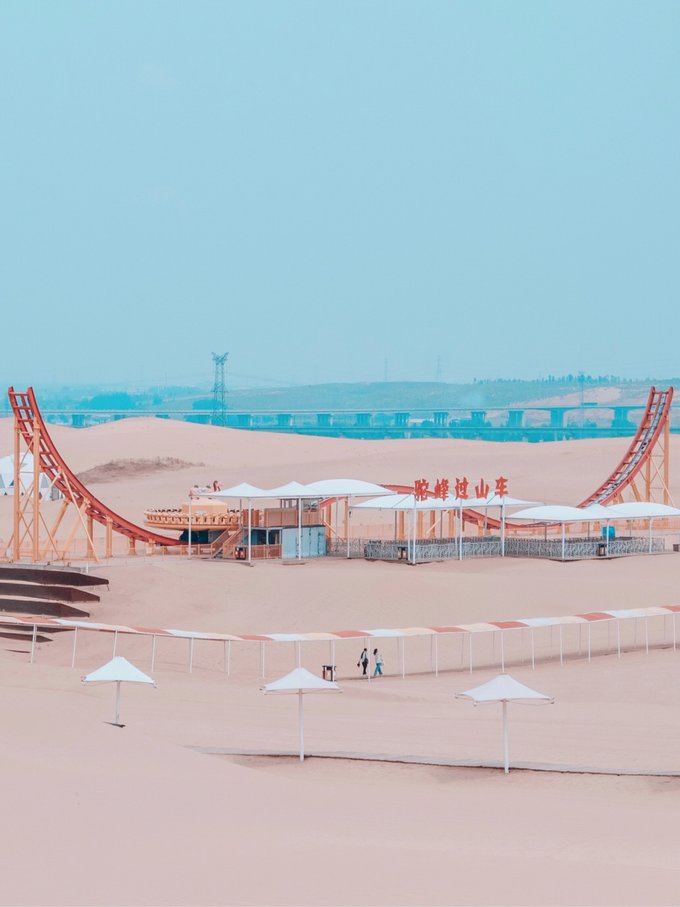 二、响沙湾——拍沙漠大片、嗨玩游乐场 第一天的行程安排在响沙湾 ,从酒店开车过去只需要1.5小时,大家可以选择自驾或者包车出行,景区外有专用停车场,10元/次,蛮便宜的! 国内外大大小小的沙漠小妖已经玩了不少啦,就连最大的撒哈拉沙漠也已踏足两次,但是这次的响沙湾是最适合朋友或者亲子旅行啦,除了常规的沙漠玩法,竟还在沙漠里建了一座游乐场,玩起来超high的~