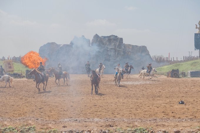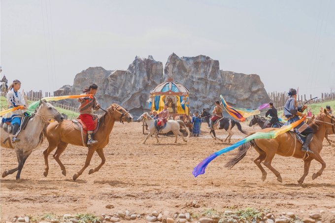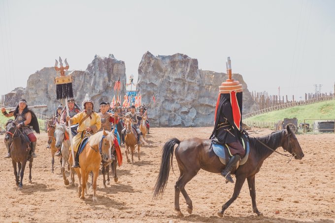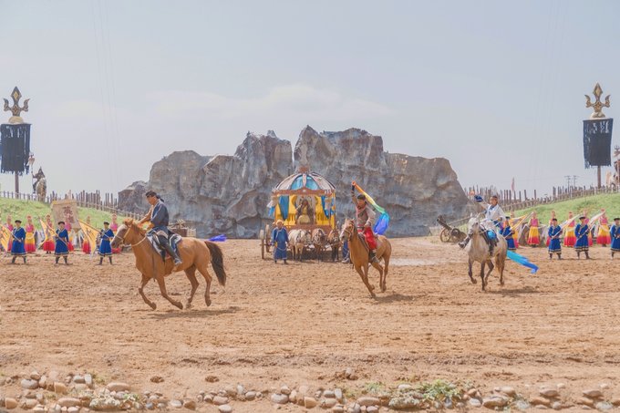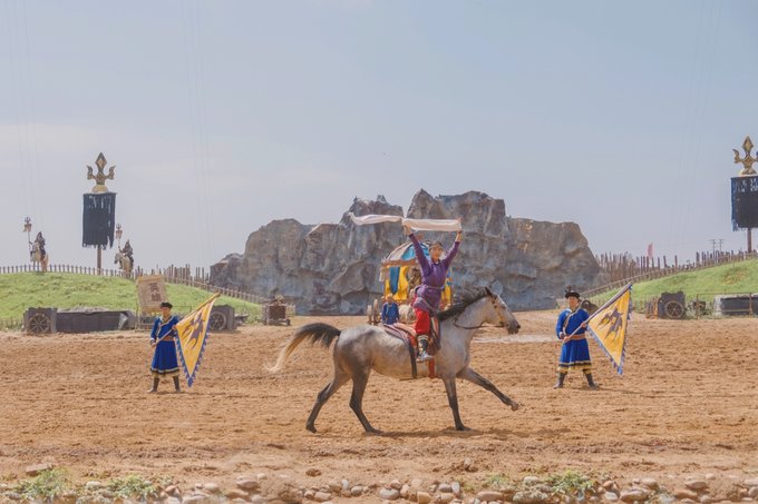 我们是上午抵达景区的,实景马术剧《英雄》第一场是11:00开始,时间卡的刚刚好。这是一台融合了马术、影视特效、传统故事的经典剧目,情节感人,讴歌了守护草原的英雄,共有50多名蒙古族的专业演员和50多匹骏马参与演出,整场观看下来震撼人心,感受到了博大精深的草原文化,领略到了马背民族的风土人情。