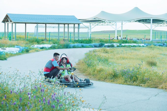 午休起床后,阳光正好,下午的草原活动以休闲为主,小妖选了滑草、草原列车、娱乐卡丁车、碰碰车、草原高尔夫、迷途乐园这几个项目