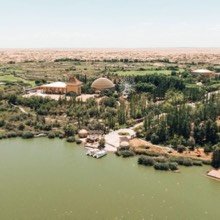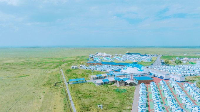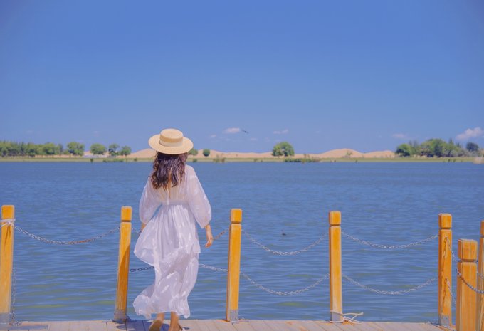 越接近七星湖景区,空气愈发变得干燥起来,沙漠的轮廓也渐次显现。 七星湖沙漠生态景区位于内蒙古自治区鄂尔多斯市杭锦旗独贵塔拉镇,是治理沙漠的优秀成果——曾经的黄沙现今已被绿植覆盖,起伏的沙丘被7个人造湖泊环绕,万里黄沙与绿植、湖水浑然一体,造就了叹为观止的沙漠绿洲奇景!