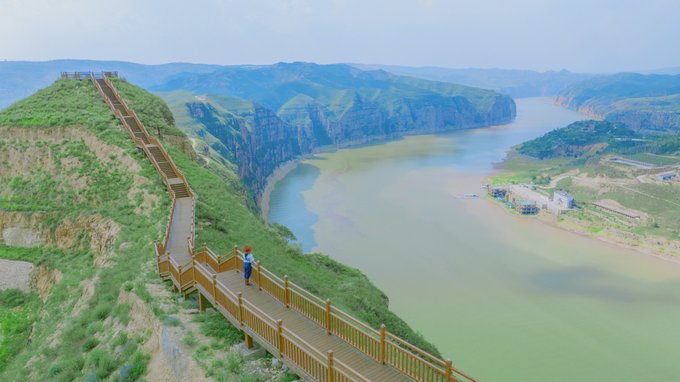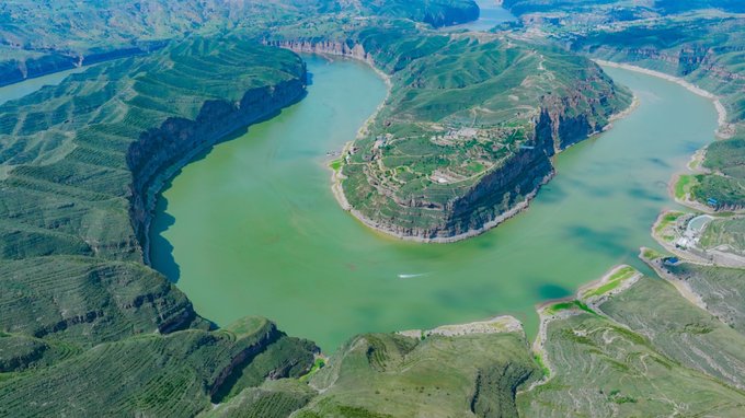 五、鬼斧神工的黄河大峡谷 第四天行程安排的是鄂尔多斯准格尔旗黄河大峡谷,这里是蒙、晋、陕大峡谷的起始段,这里不仅有曲折蜿蜒、山水交融、鬼斧神工的太极湾,还有历史积淀丰厚的古老村落。 大峡谷大体呈南北走向,全长约197千米。河道曲折蜿蜒,两岸绝壁矗立,气势磅礴; 取道吕梁山脉与黄土高原之地裂,一路左冲右突,绕老牛湾、太极湾,入龙口、跌碛口、冲壶口、出龙门,景象奇绝。因此,太极湾也成为拍摄大峡谷的最佳位置。对岸有数不清的沟壑汇聚,脚下有长河环抱,背后有群山连缀,鬼斧神工,山水交融,是一出不可多得的风水 风水宝地。