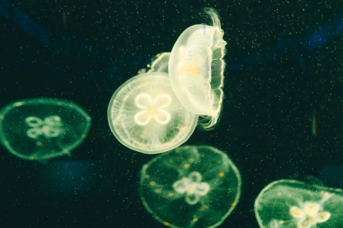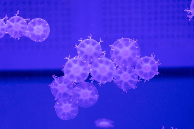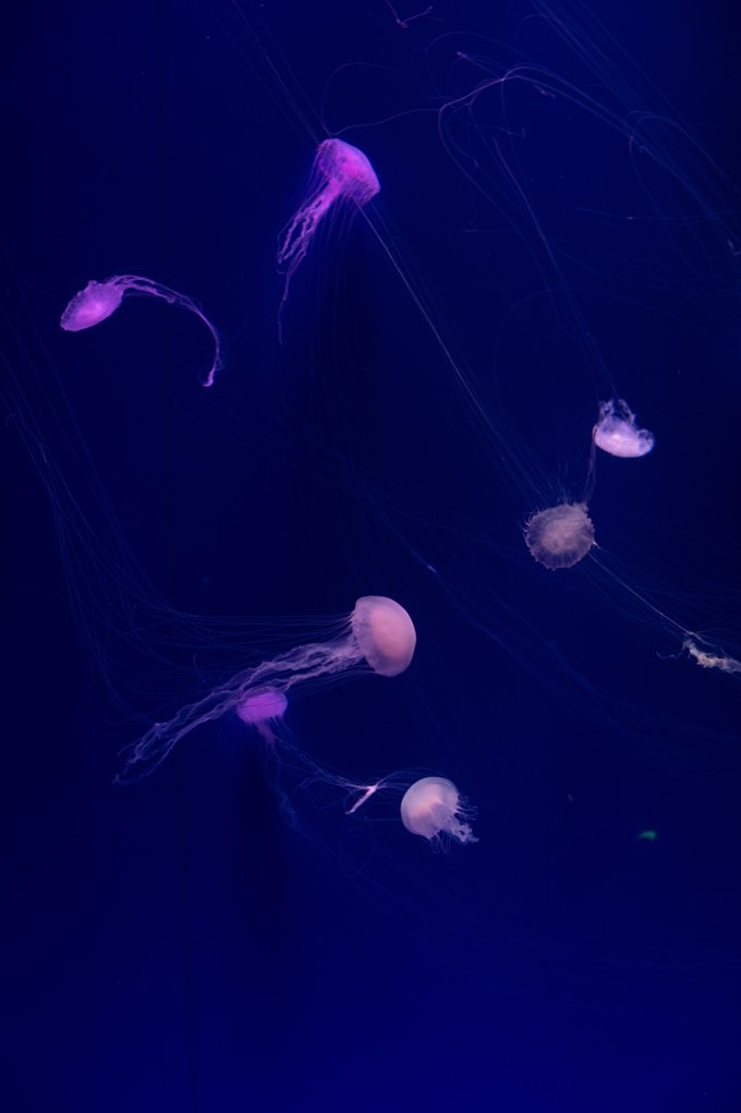 逛海洋馆最不能错过的就是水母啦,触手有长有短,远远望去就像一顶顶透明圆伞在水中漂游,在不断变换的各色灯光点缀下,游动着的色彩各异的水母梦幻绝伦!