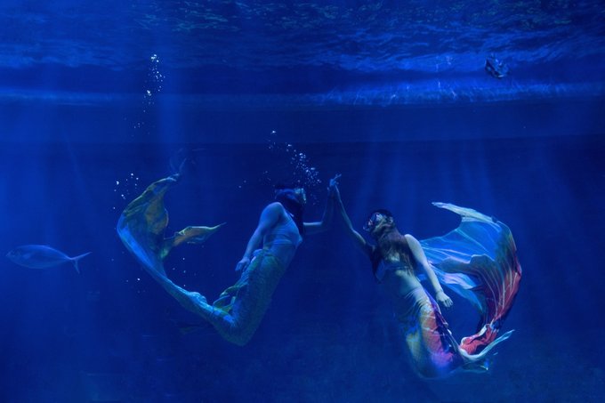 美人鱼表演分为周内场和周末场,周内分别为10:30,14:30,16:30,周六,周日及法定假日分别为9:30,11:00,13:50,15:00,16:30。我们当时恰好赶上14:30的场次,观看了一场栩栩如生的表演。