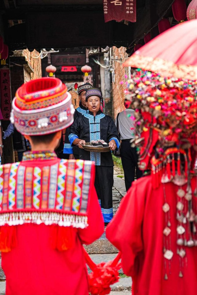 参观福溪村民俗文化馆,体验富川瑶族传统婚俗文化。