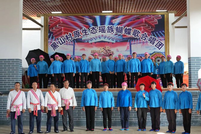 富川瑶族自治县白沙镇黑山村是典型的少数民族特色村,2015年被评为国家级非物质文化遗产瑶族蝴蝶歌传承基地。近年来,该村高度重视蝴蝶歌的文化传承工作,修缮了蝴蝶歌堂、建设了蝴蝶歌实景演出舞台及蝴蝶广场等,努力实现“人人都是歌唱者、个个都是传承人”的目标,不断擦亮国家非物质文化遗产名片。
