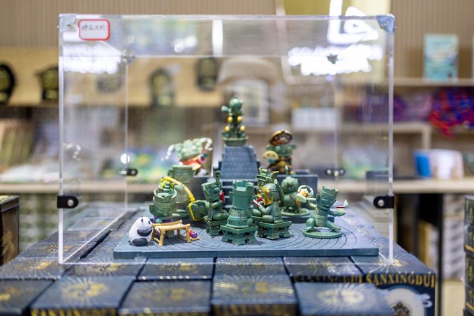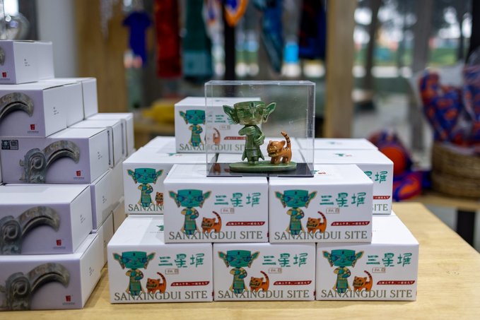 三星堆文创 三星堆的文创实在是太可爱了!凭借着自身的“神秘感”和“奇特性”,三星堆的IP红透了,又戏谑又深沉,充满了一种诙谐的戏剧化。文创周边也是不负众望,推出的文创产品不仅种类多,而且满满创意,价格也不贵,性价比高。 在三星堆博物馆的院子里,大片树林里的小房子就是文创店啦,在文创店里能看到基本的布袋子、摆件、冰箱贴、杯子这些,还看见青铜小人打麻将哈哈!也被演绎出各种和川蜀文化相关的造型。还有会以四川美食为主的系列,雪糕,月饼等等。 “不想只做博物馆”,是三星堆博物馆的发展愿景,衷心希望三星堆越来越好。