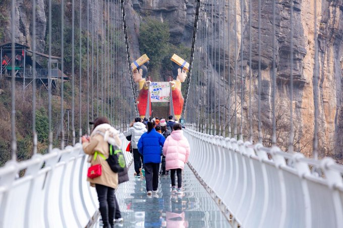 第二日前往景区前山,前山主要是以猿王洞、情人桥为主的必打卡景点和一些挑战类型的项目,猿王洞内冬暖夏凉,如果感觉到寒冷,在猿王洞里感受天然空调也是不错的选择,还能欣赏喀斯特地貌形成的溶洞景观,情人桥更适合情侣打卡,有着祝愿白头偕老之意。