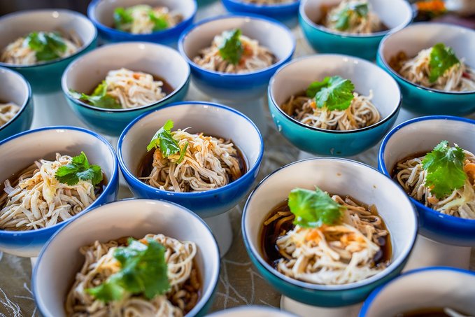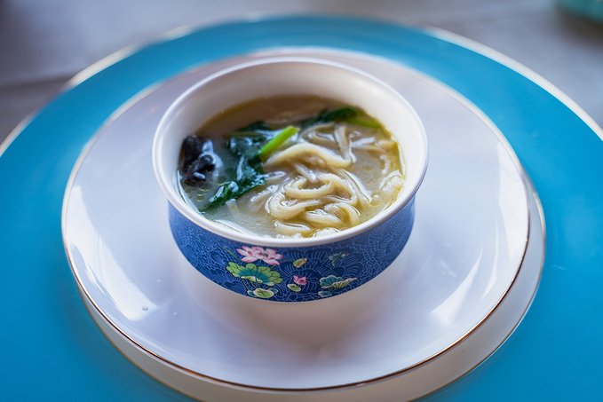主食是虾仁煨面。或许是前面茶点太过于丰盛,以至于这个主食上来时,感觉肚子已经饱了。还好面分量不大,两口就吃完,味道鲜美浓郁,略显油腻,不过有茶在,可解。值得一提的是,万福早茶为定制餐,我们选的这一款为198元一位的套餐,如果你想去吃得提前一天订餐。整体感觉用餐环境非常的赞,茶点丰富且味道正宗,价格也挺合适,值得推荐。