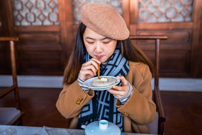来到江苏,蟹黄汤包是必吃的美食。用蟹黄、蟹肉和鸡汤为馅,制作工艺精妙绝伦,造型也是非常奇特。吃法更讲究,用吸管插入汤包中,先吸鲜美的汤汁,然后再从洞口倒入醋,最后将整个包子吃掉。蟹黄汤包味道鲜美,营养丰富。