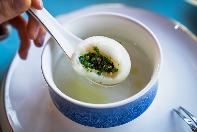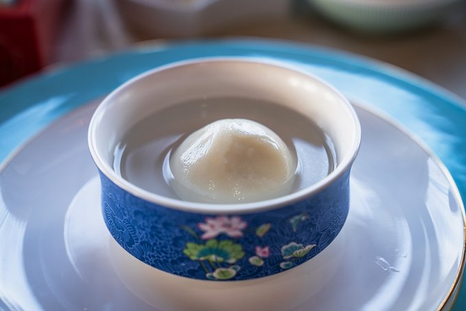 荠菜汤圆。在所有小吃中,个人最不爱吃的就是汤圆,不过这款小点让我对汤圆有了全新的认识,甚至可以说相当的喜欢。汤圆的皮细腻柔软且不粘牙,鲜美的荠菜带着汤汁,综合了清淡的汤圆皮,让整个汤圆在口腔中层次分明,味道十足。个人非常推荐。