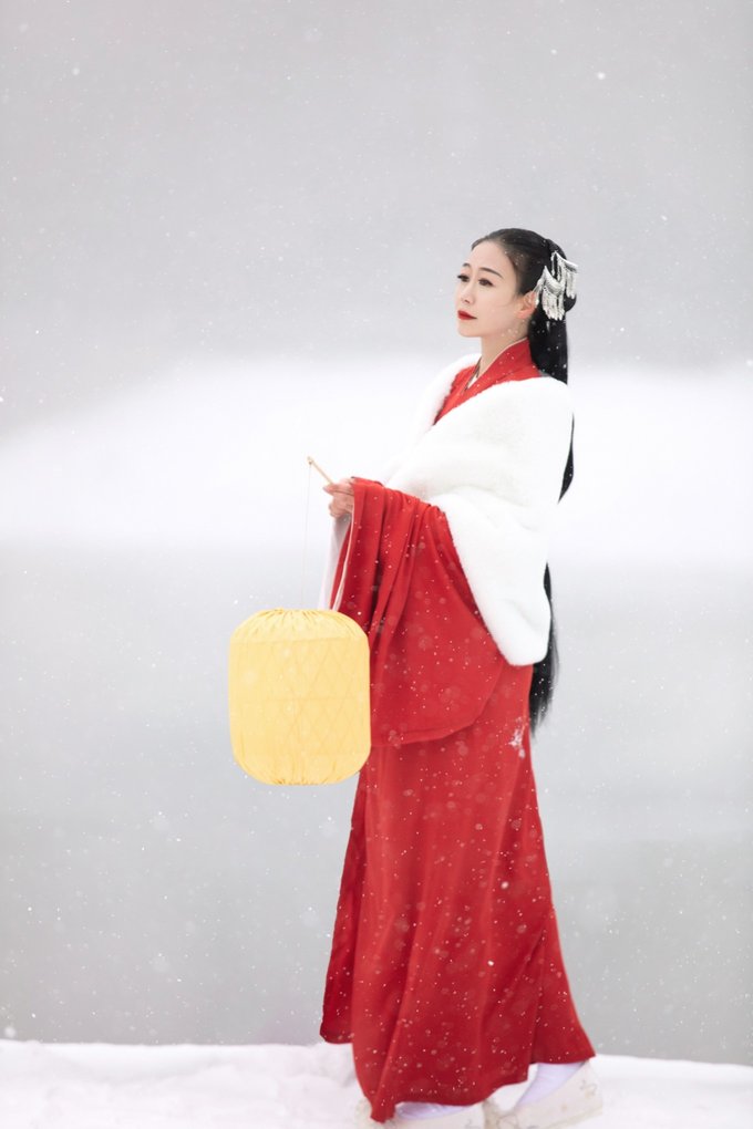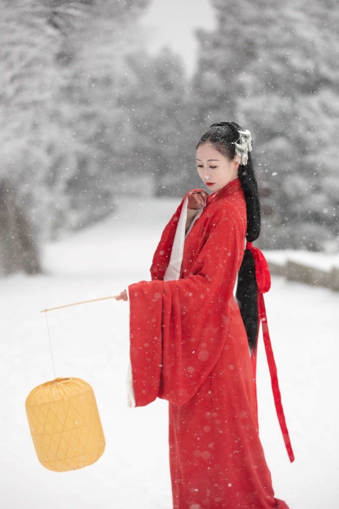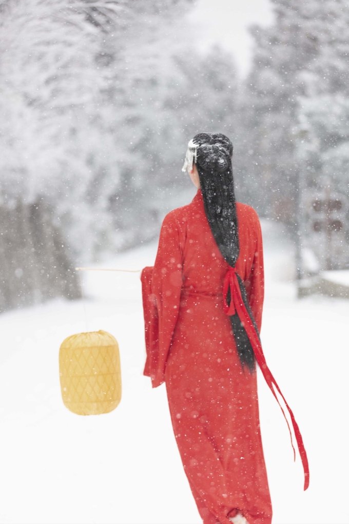 此情此景和汉服真的是太配了,提着灯笼走在雪中,我不有自主地哼唱了起来:我慢慢地听雪落下的声音,闭着眼睛幻想它不会停~