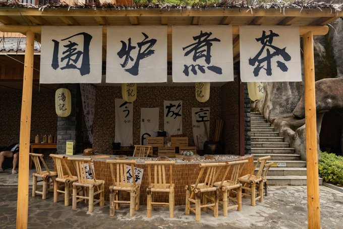 今年最火的围炉煮茶这里也有,你一定没尝试过边泡温泉,边围炉煮茶吧?偷得浮生半日闲,和三五好友喝茶泡温泉,烤柿子真的很惬意!